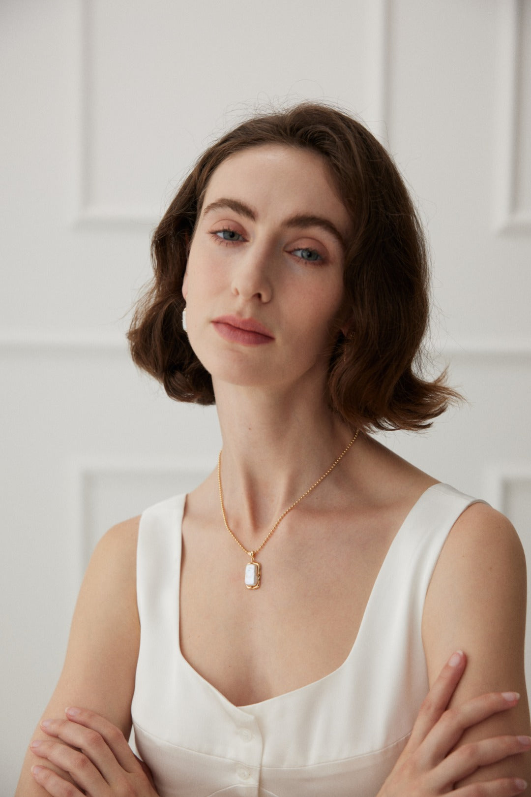 The natural pearl pendant adds a touch of sophistication and elegance, making this necklace a standout piece for both daily wear and formal occasions.